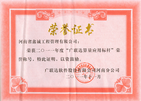 我公司被广联达软件公司评为2011年度广联达算量应用先锋